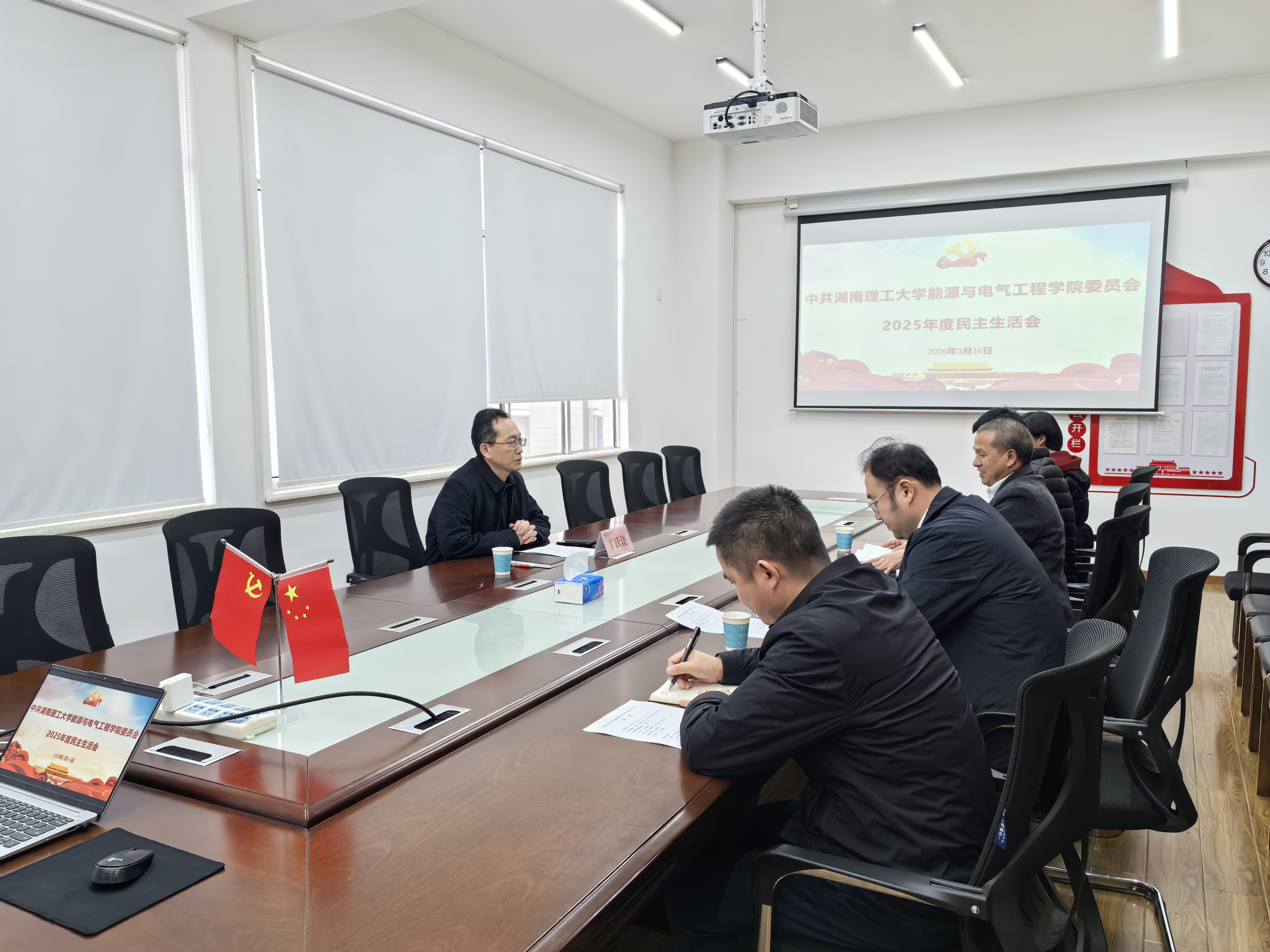 校园网讯 3月16日下午,能源与电气工程学院党委班子召开2025年度民主生活会,校党委委员、副校长丁跃浇到会指导。会上,学院党委负责人通报准备情况,代表班子围绕“五个带头”深入查摆问题,剖析根源并提出整改措施。班子成员结合自身实际,逐一进行个人对照检查,严肃开展批评与自我批评。丁跃浇充分肯定会议质量,指出准备充分、问题查摆结合工作实际,展现了班子良好政治生态与积极风貌。他强调,学院党委班子要以此次会议...
