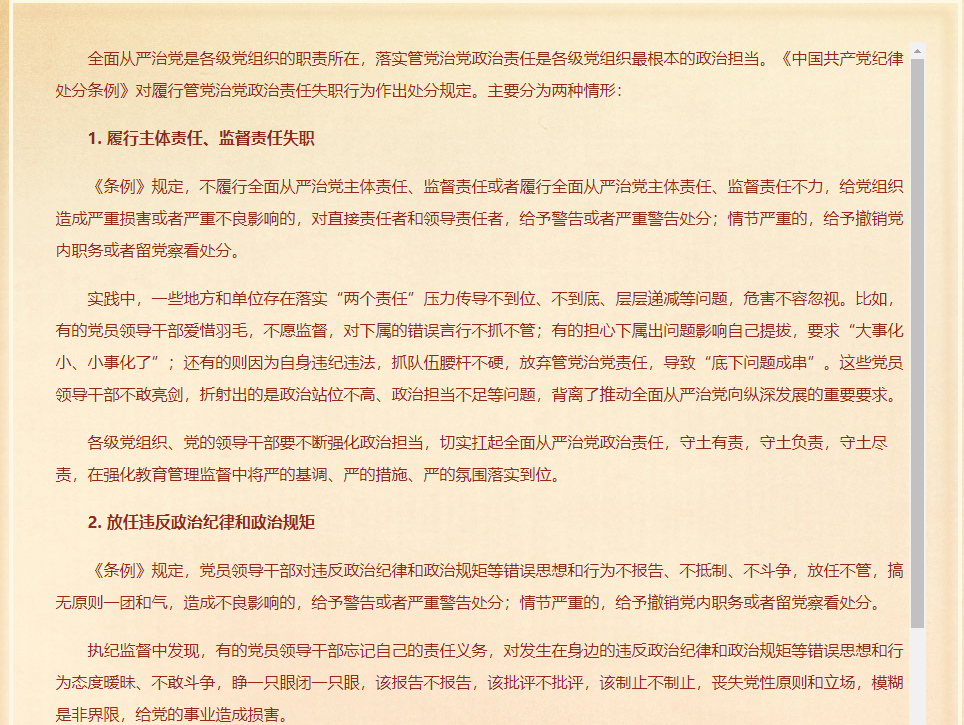 关于履行管党治党政治责任失职的处分规定