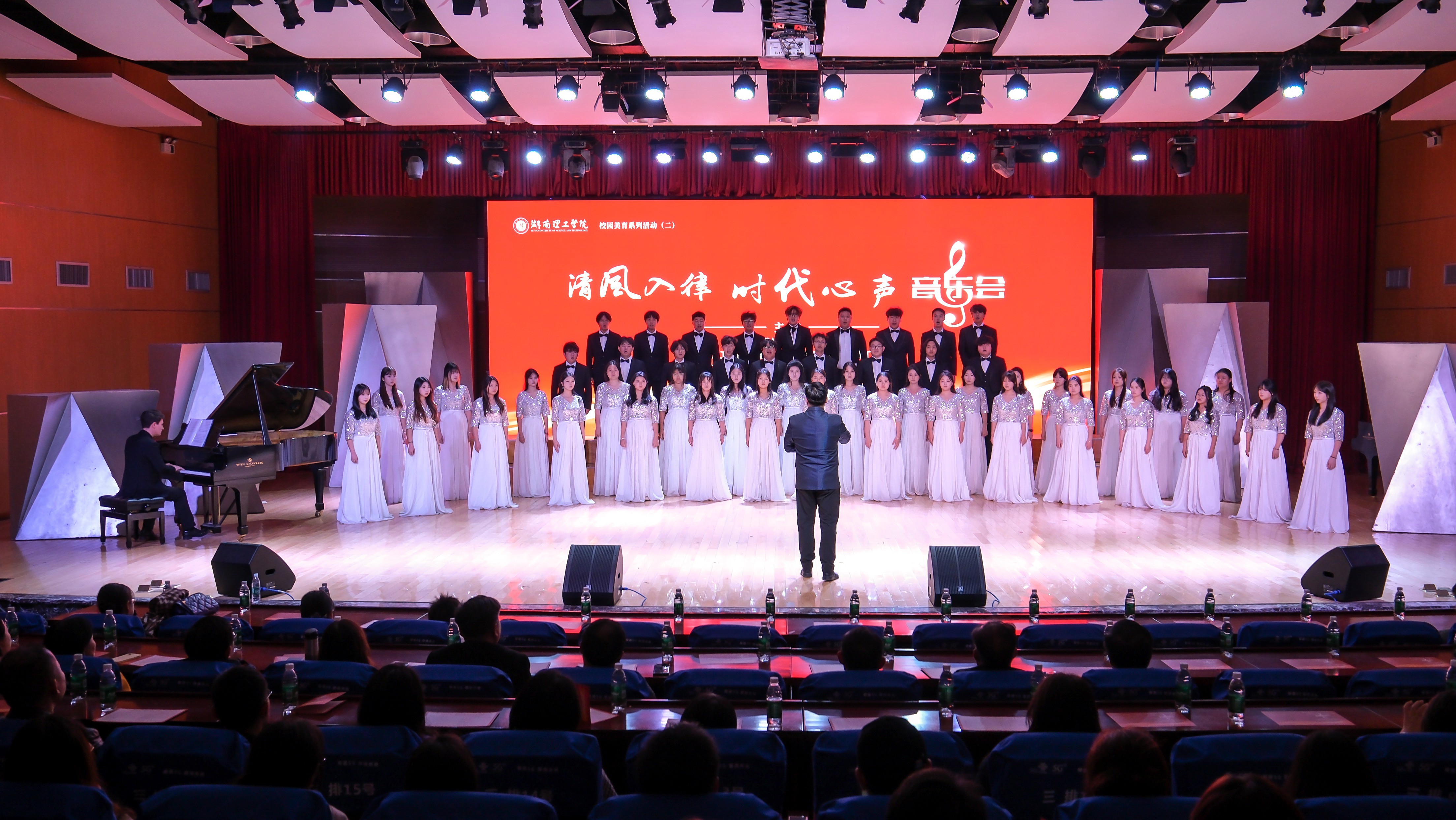 党委委员、纪委书记谢贵辉,党委委员、副校长刘长辉现场观看了音乐会。本次音乐会由纪检监察处(巡察办)、党委宣传部、党委学工部、研究生工作部、教务处联合主办,音乐学院承办。